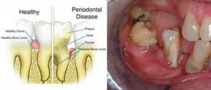 Teeth are held strongly in the jaw by alveolar bone. Gum infection will lead to destruction of the bone holding the tooth. In most of the cases it happens very slowly and patients are not aware of it.